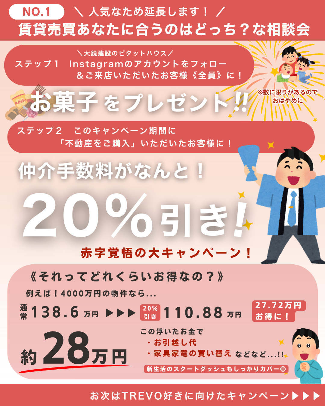 仲介手数料が50%OFF(かなり太っ腹企画です)!!
