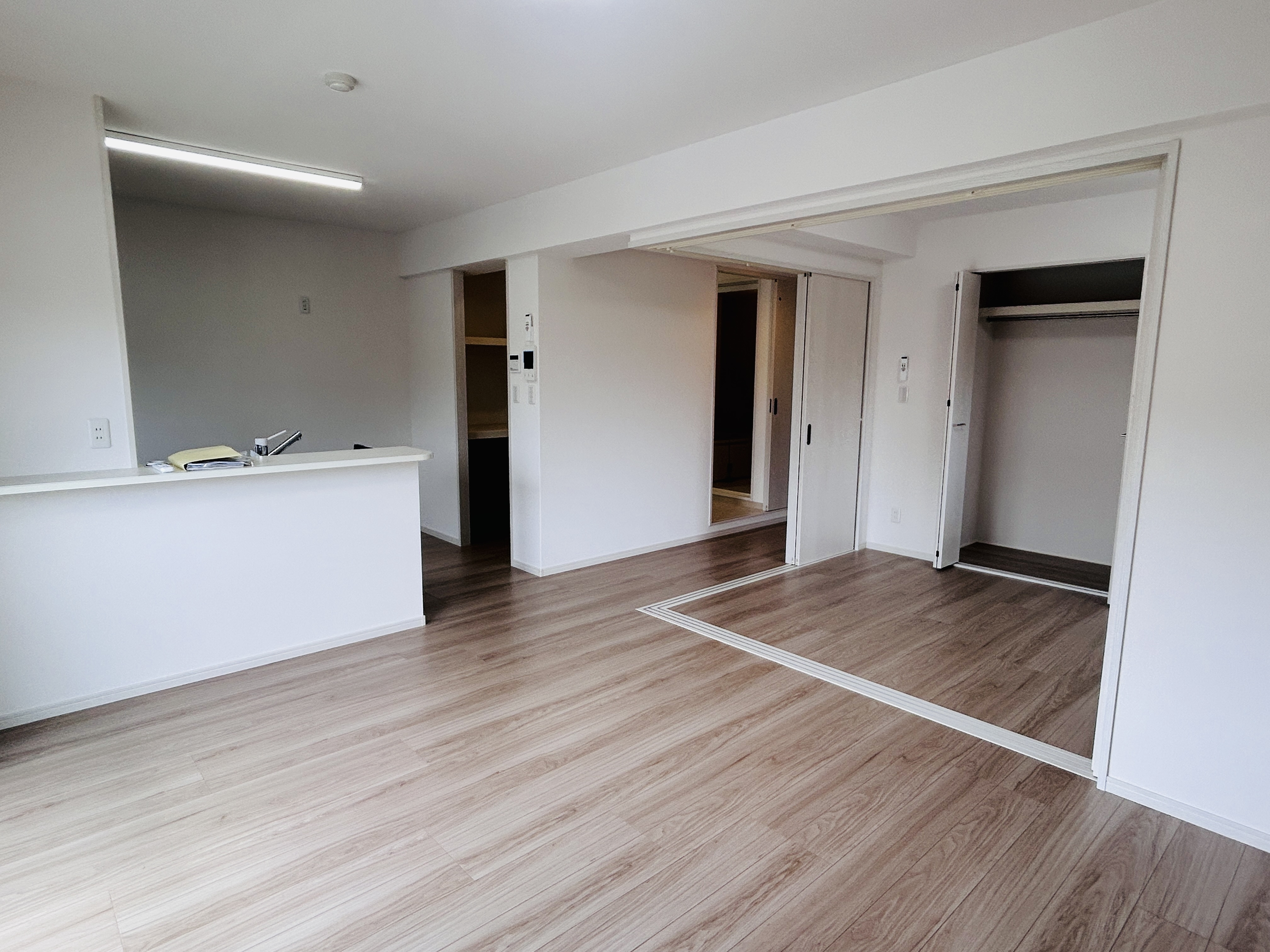 普段から仕切りを開けて、広い1DKのような間取りで使うのもよし、仕切りを閉じて